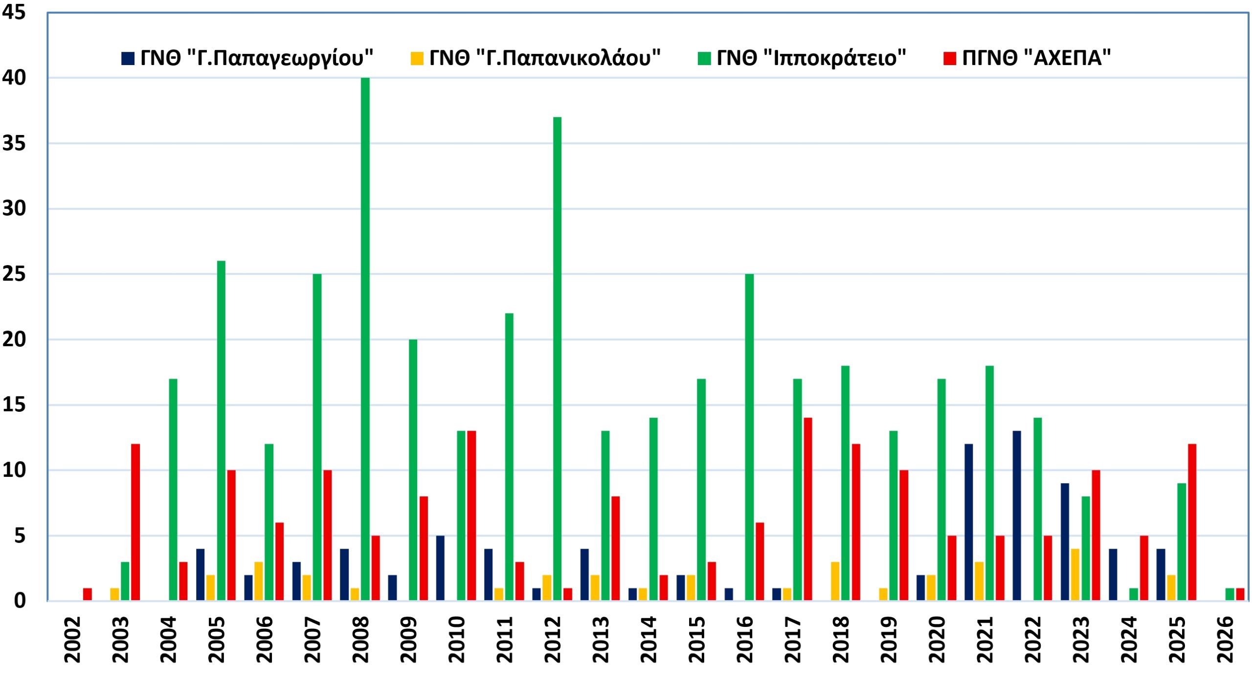 Γράφημα 2. Ασθενείς προερχόμενοι από τα τέσσερα μεγάλα νοσοκομεία της Θεσσαλονίκης ανά έτος.